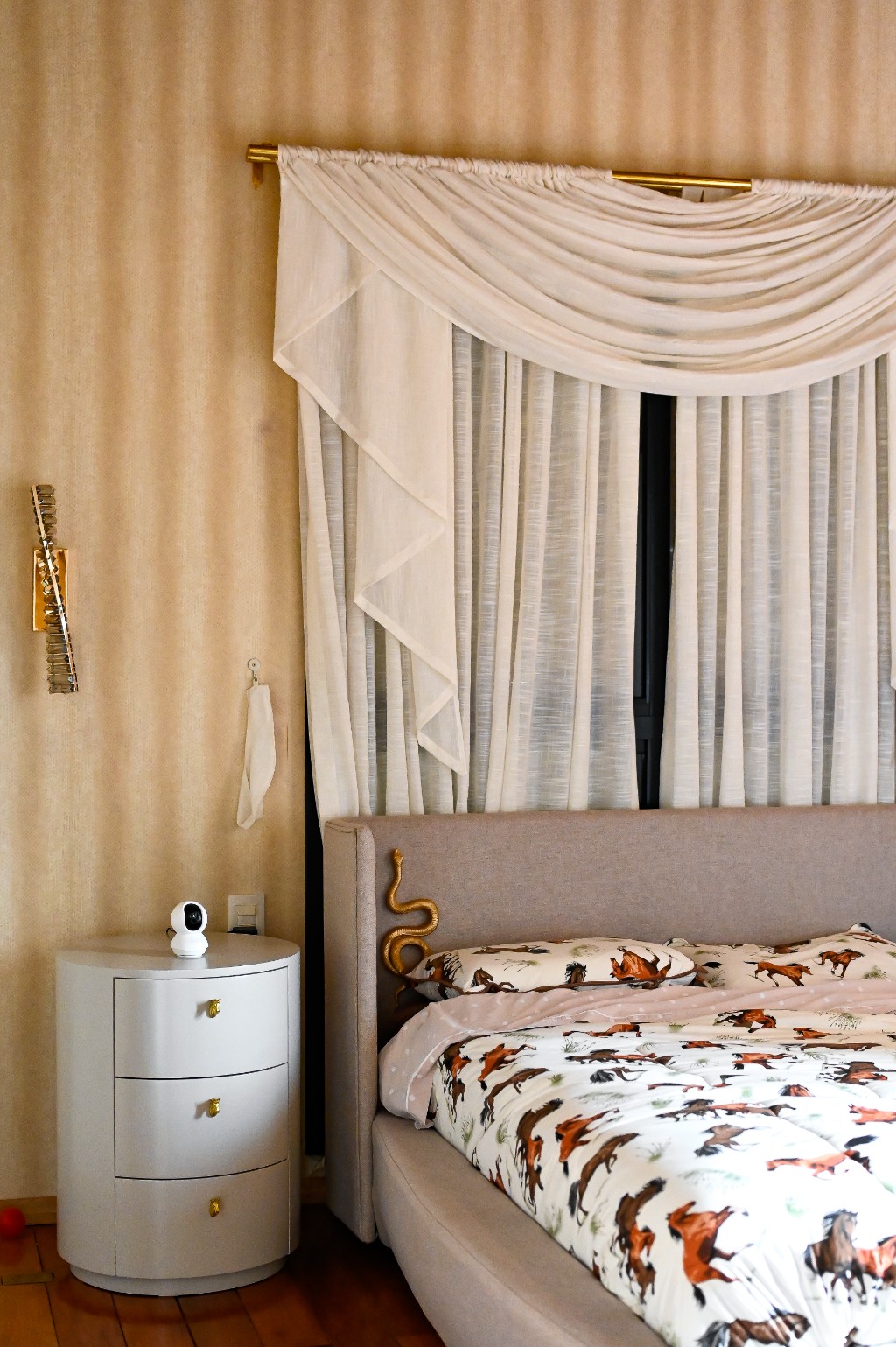A proposta foi valorizar a atmosfera da propriedade sem descaracterizar sua essência. Para isso, foram escolhidos padrões que dialogam diretamente com o universo rural: estampas de cavalos, elementos inspirados na natureza e texturas marcantes, criando uma composição que une tradição, personalidade e elegância.